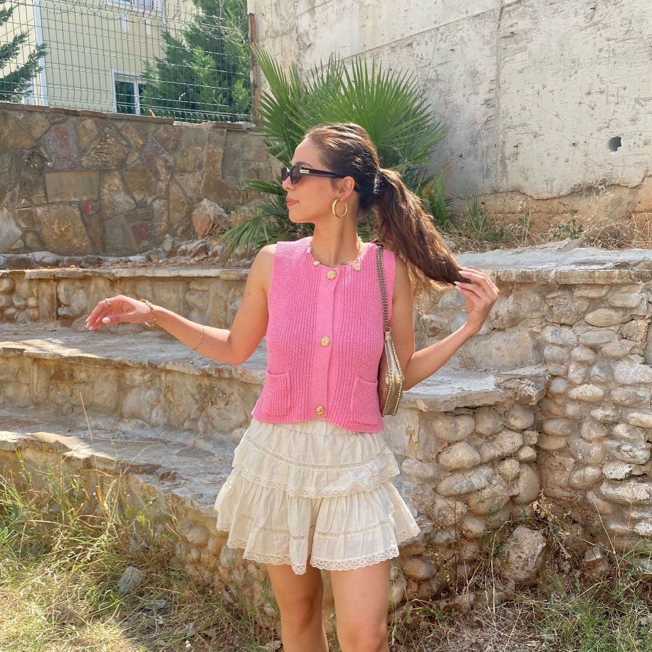 Dantel Detaylı Kat Kat Mini Etek – Ekru